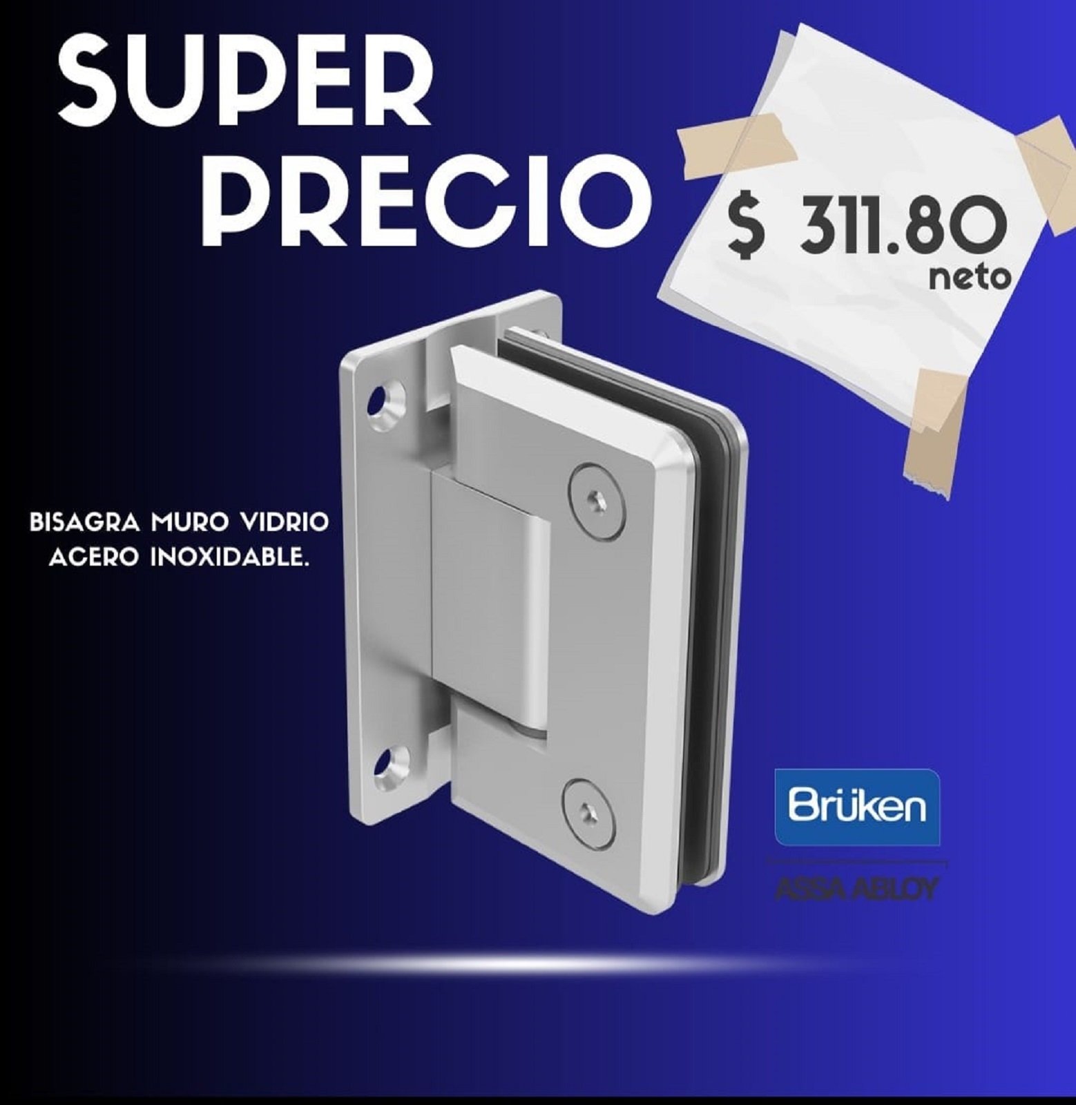 • Bisagra muro-vidrio, doble acción, para 25kg